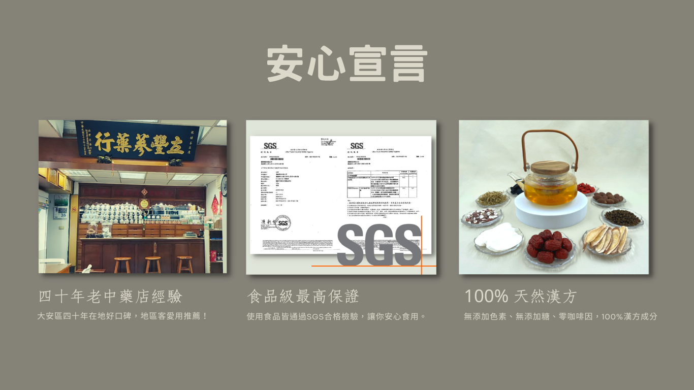● 使用通過 SGS 檢驗並通過農藥和重金屬檢測的中藥材,使用的更安心