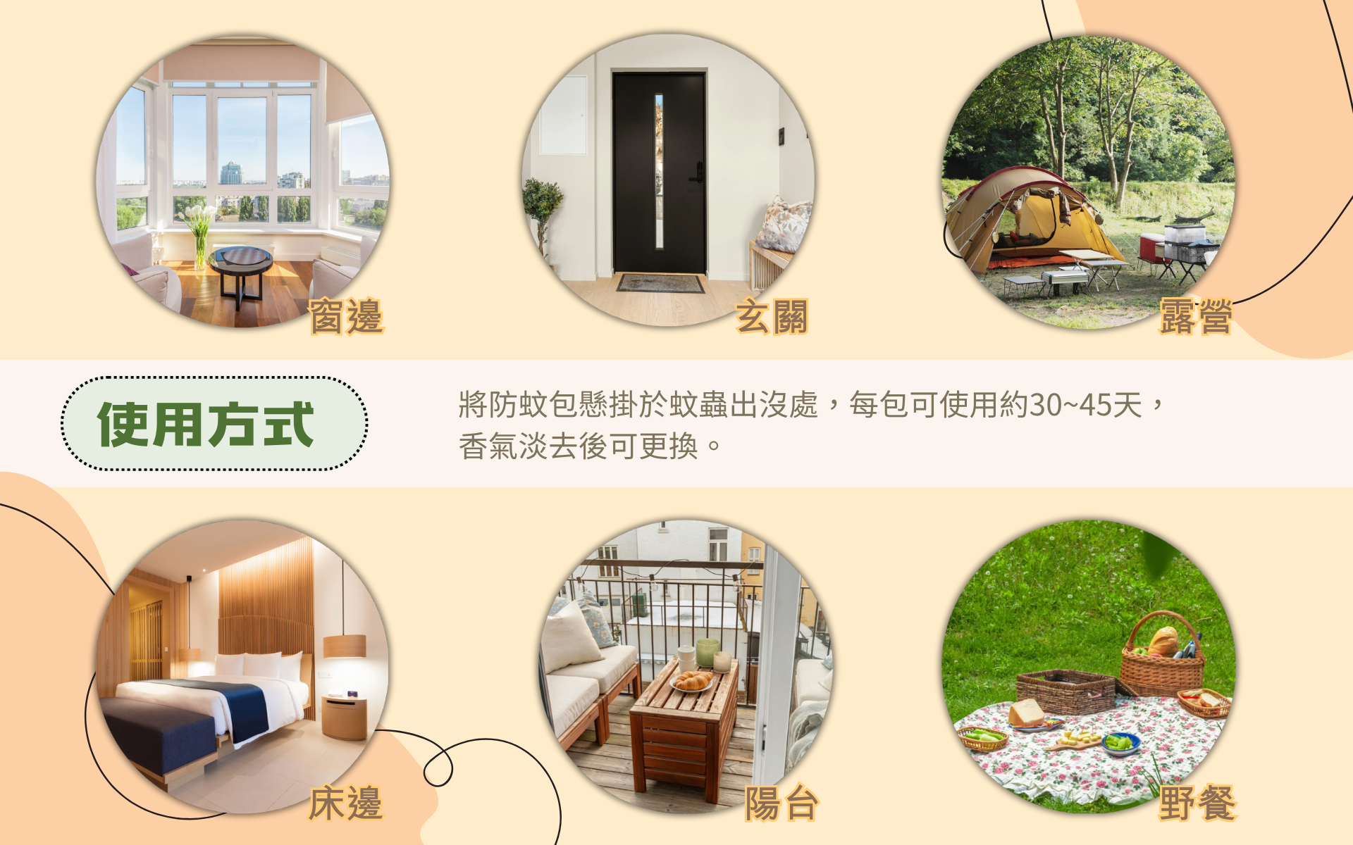 ✔ 可吊掛於窗戶、門邊、帳篷、嬰兒車等通風處,亦可隨身攜帶外出使用